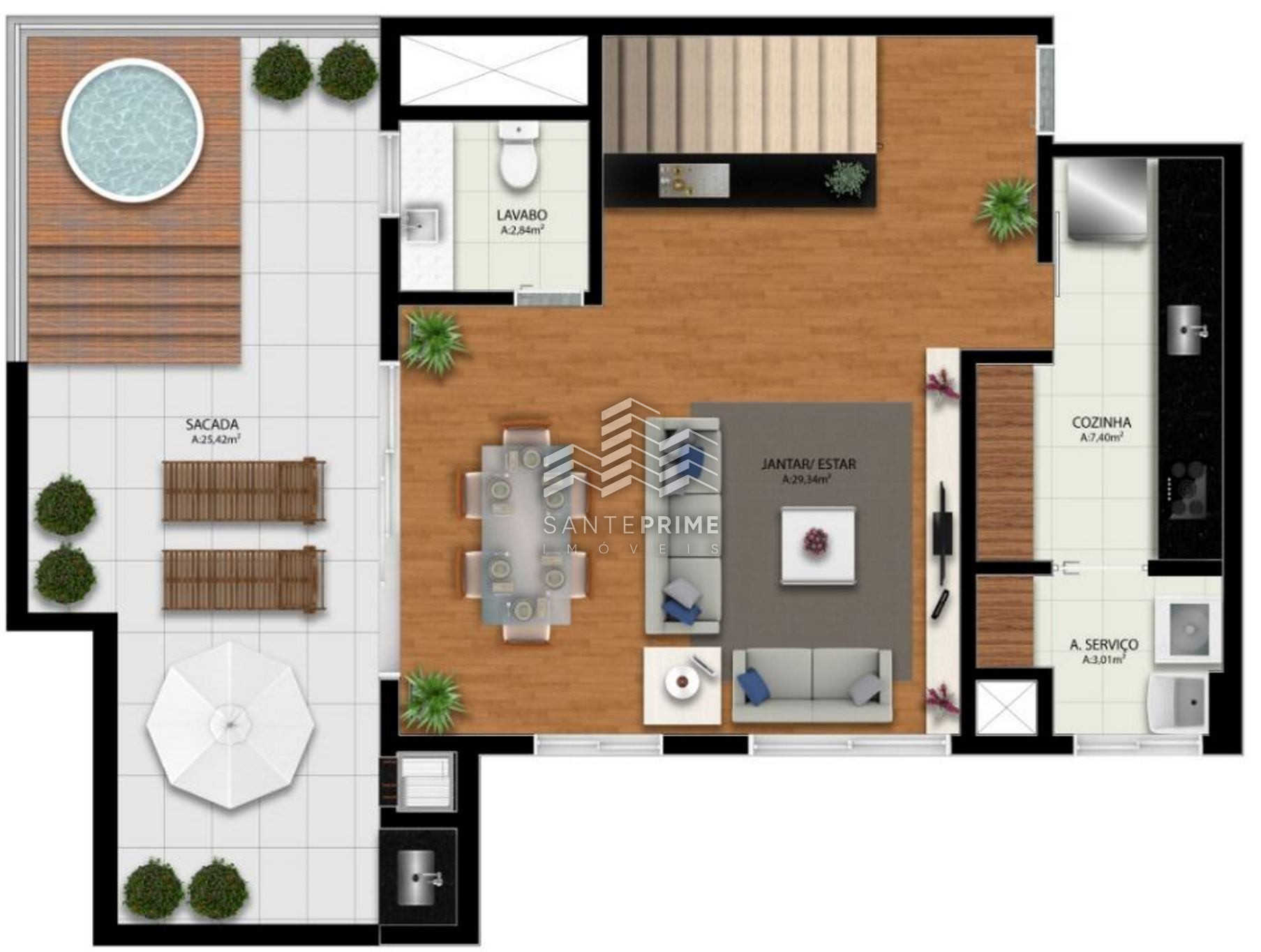 Terraço com 17,22m² com espaço gourmet